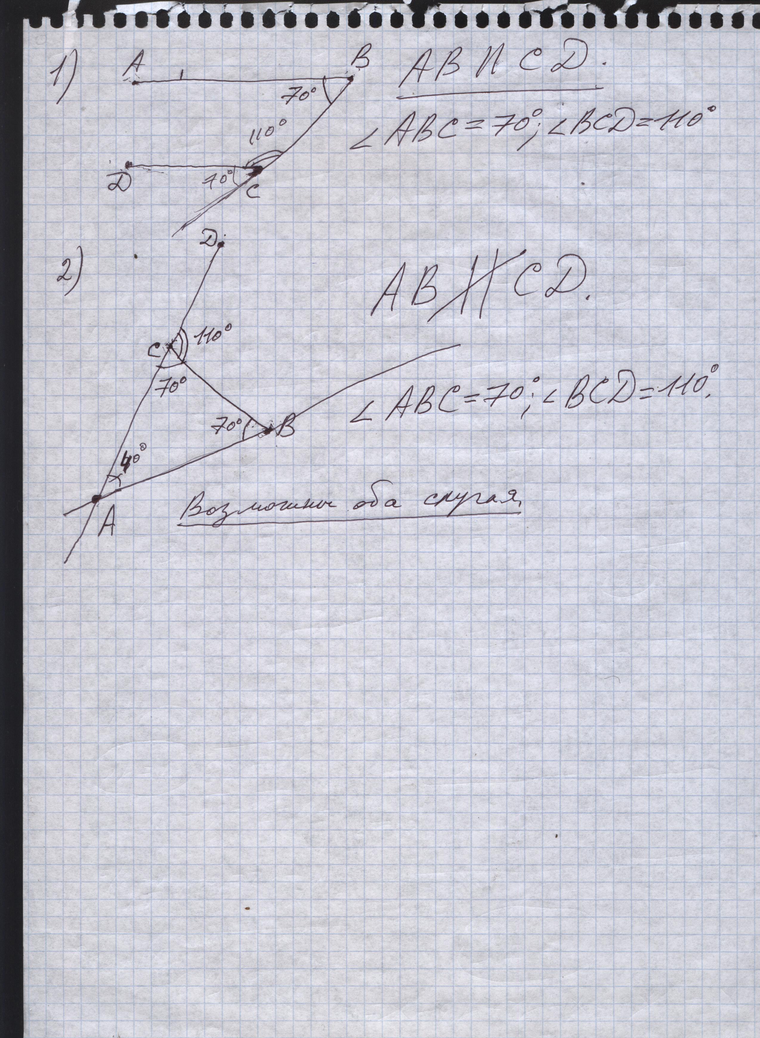 угол АВС равен 70°,а угол ВСD равен 110°.Могут ли прямые АВ и CD быть: