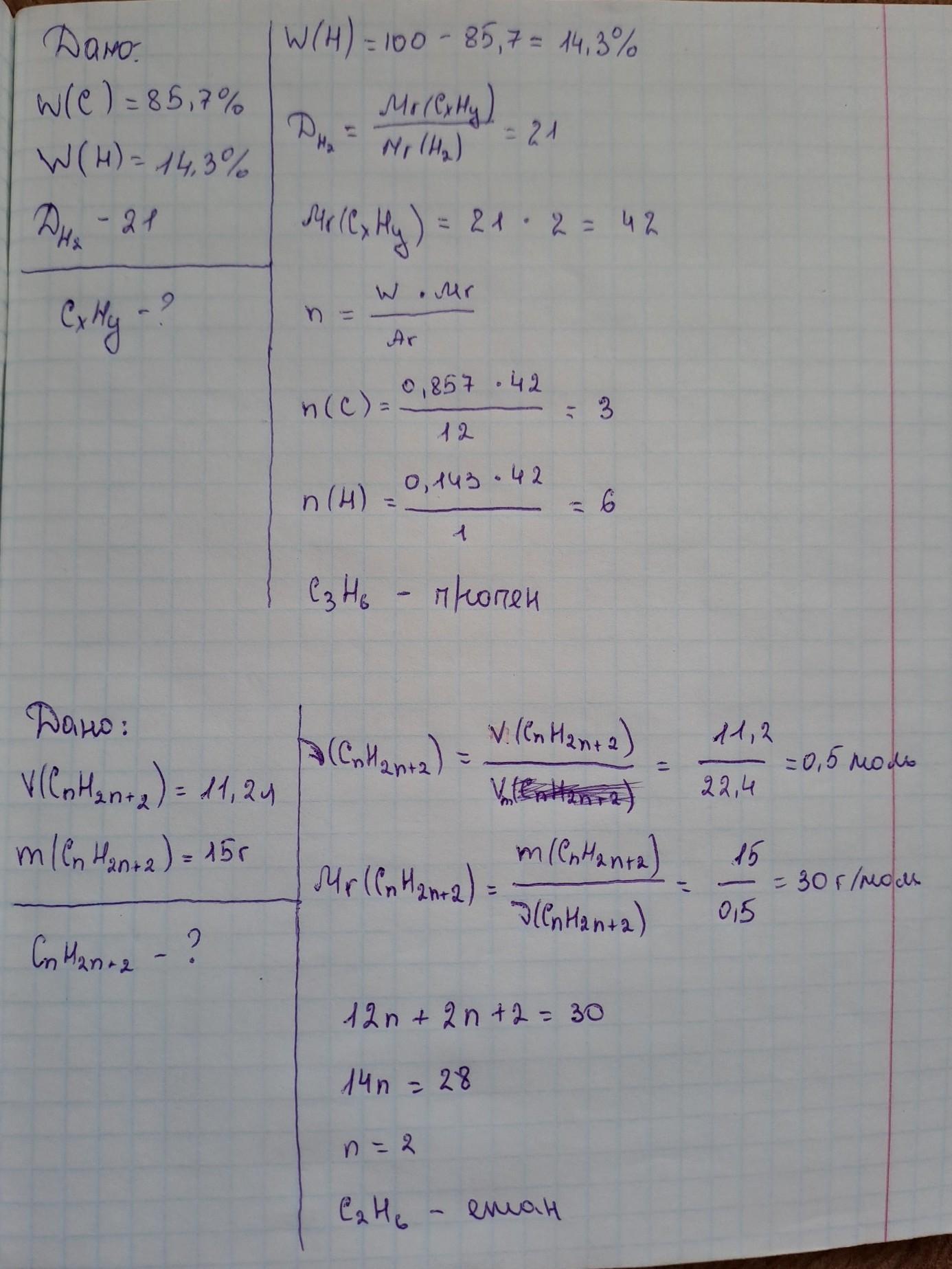 7,Виведіть молекулярну формулу вуглеводню, масова частка Карбону в якому дорівнює 85,7%, а відносна густина парів речовини за воднем – 21.