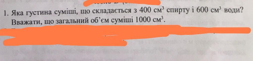 ρ ? ρ=(m₁+m₂)/V=(V₁ρ₁+V₂ρ₂)/=(400*0,8+600*1)/1000=0,92 г/см³
