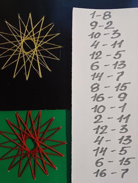 делаешь циркулем круг с не цветной стороны картона. Потом делаешь16 дырочек примерно на одном растоянии и намечаешь цифровой а помните протягиваешь ниточку от цифре к цифре и все
