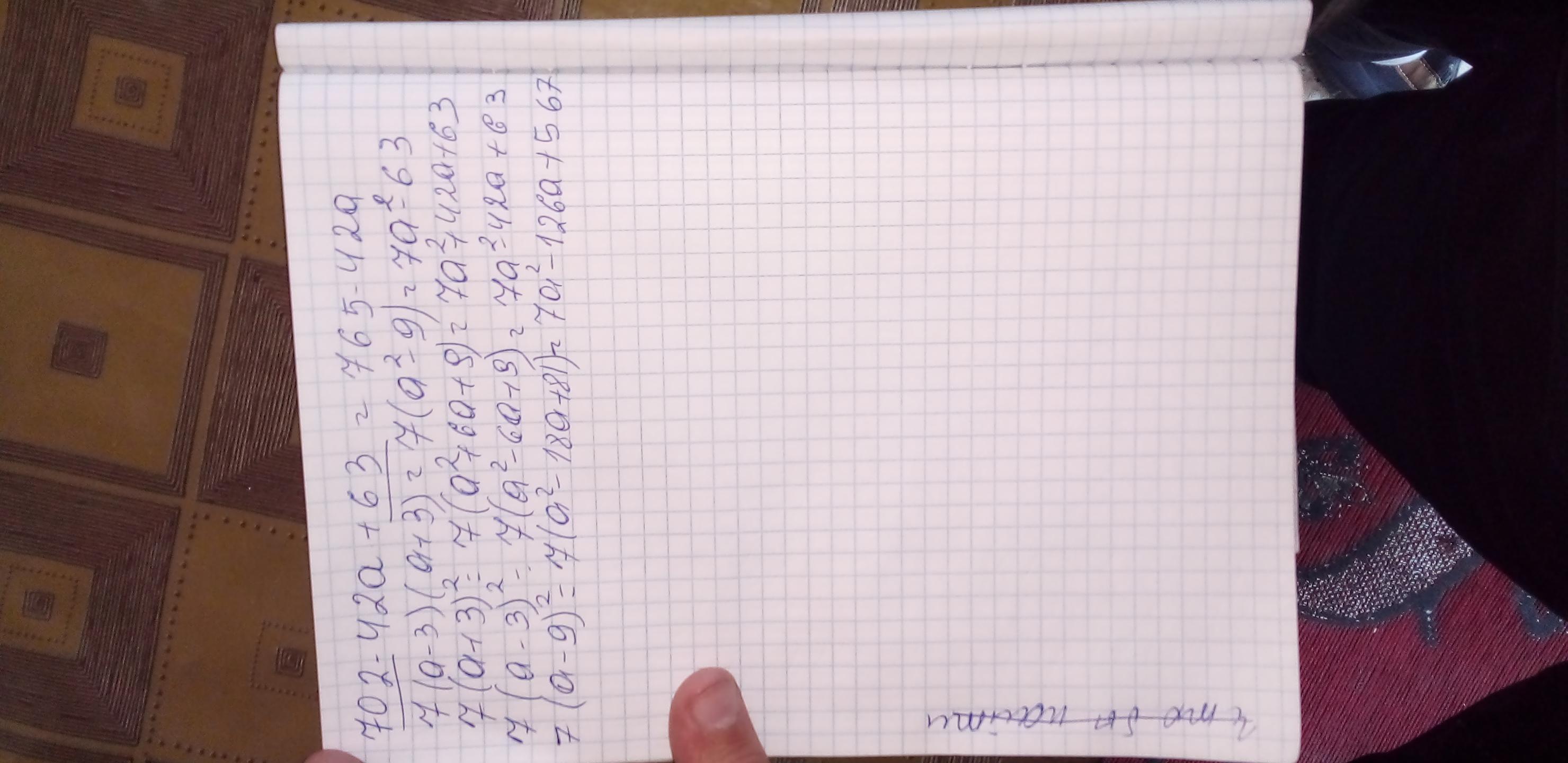5. Розкладіть на множники вираз 702 - 42а + 63. A) 7 (a - 3) (a + 3); B) 7 (a + 3)2; Б) 7 (а - 3)2; Г) 7 (a - 9)².