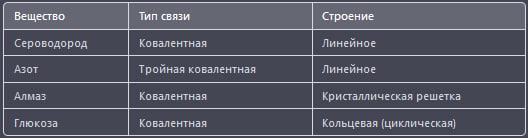 Вещество Тип связи Строение