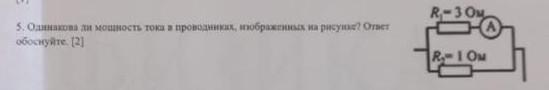 5. Одинакова ли мощность тока в проводниках, изображенных на рисунке? Ответ обоснуйте. [2]