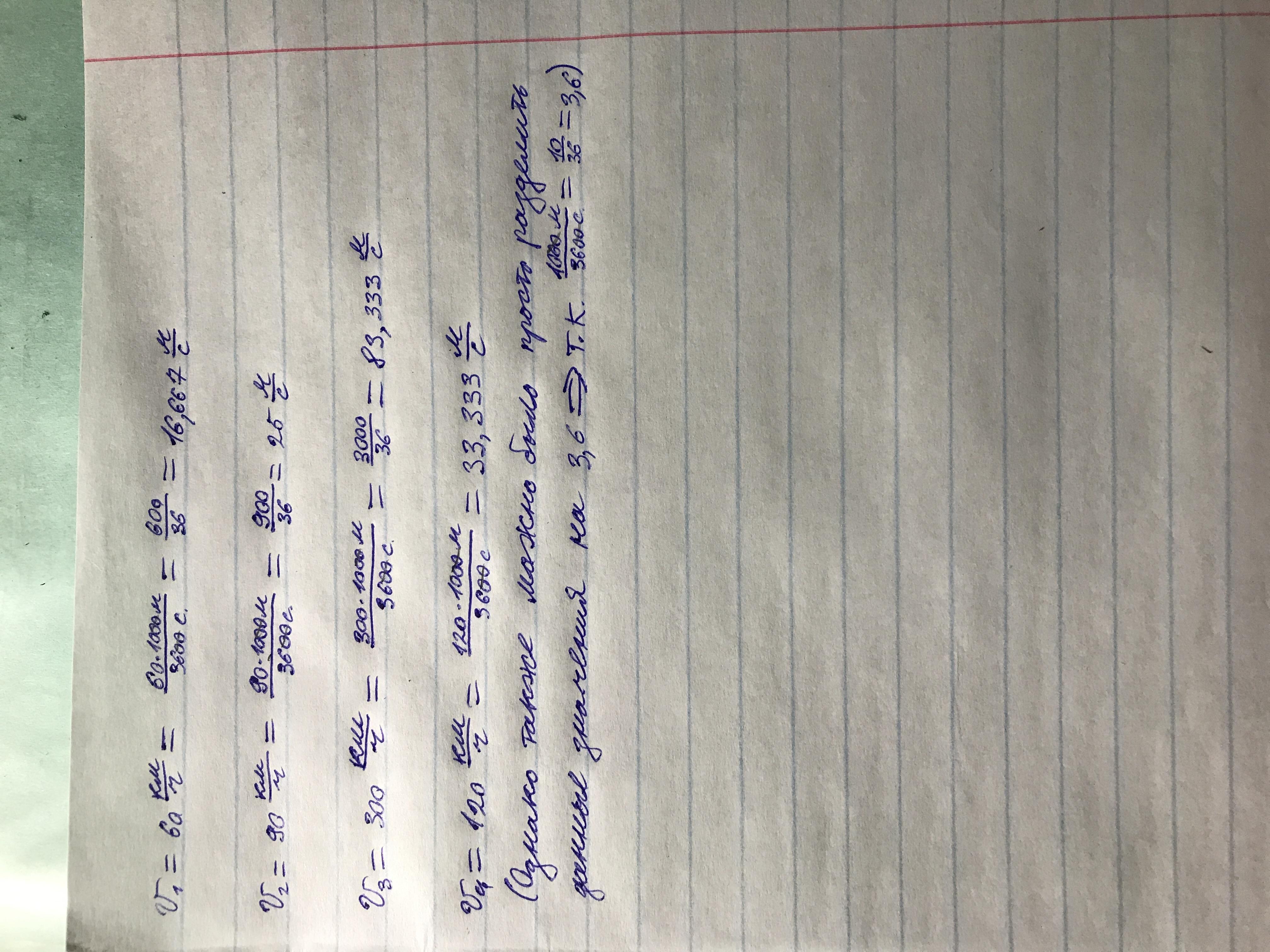 Ответ: я всё подробно расписал на фото. Зная, что в 1 км у нас 1000 м, а в 1 часе 3600 сек. то мы можем переписать наши значения и сделать математические вычисления как на фото
