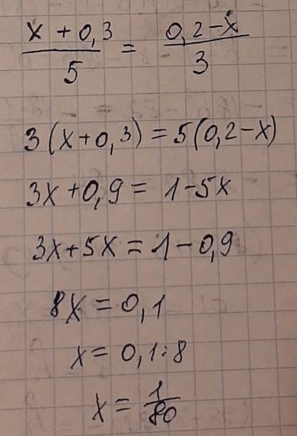 3 * (х + 0,3) = 5 * (0,2 - х)