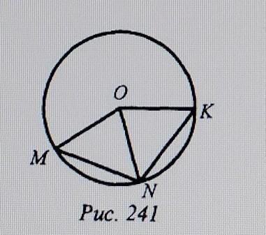 183. У колі проведено радіуси OM, OK i ON (рис.241). Доведіть, що якщо MN = NK, то <MON = <NOK.