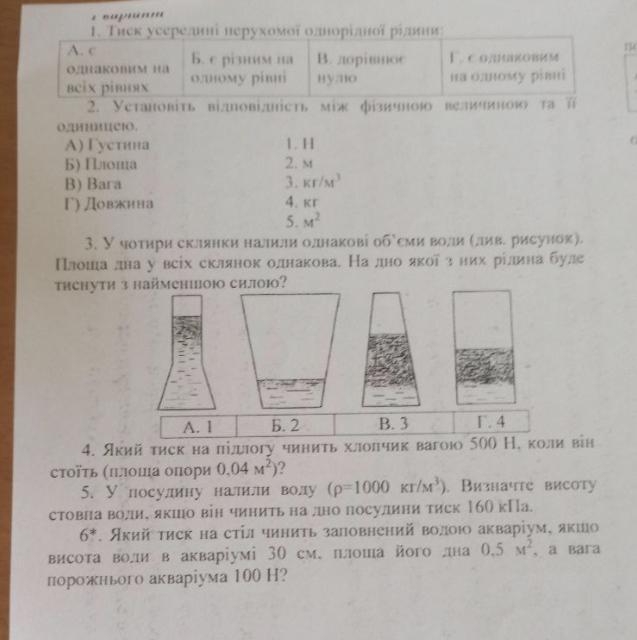 3.А) 1 склянка, оскільки тиск залежить від висоти стовпа рідини та не залежить від форми посудини.