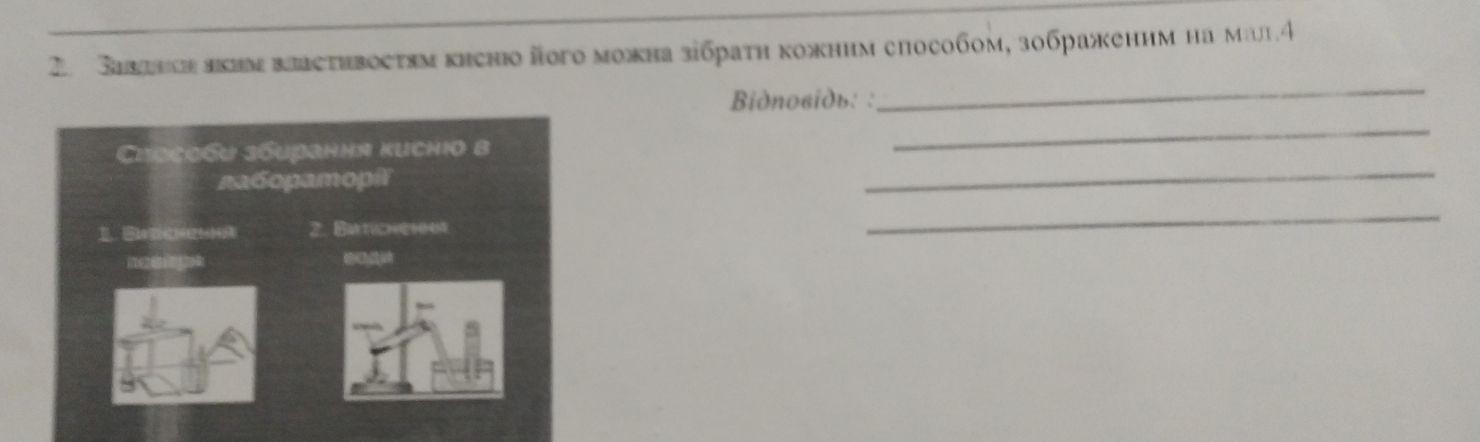 2. Завдяким властивостям кисню його можна зібрати кожним способом, зображеним на мал. 4 Відповідь: Способи збирання кисню в лаборатор