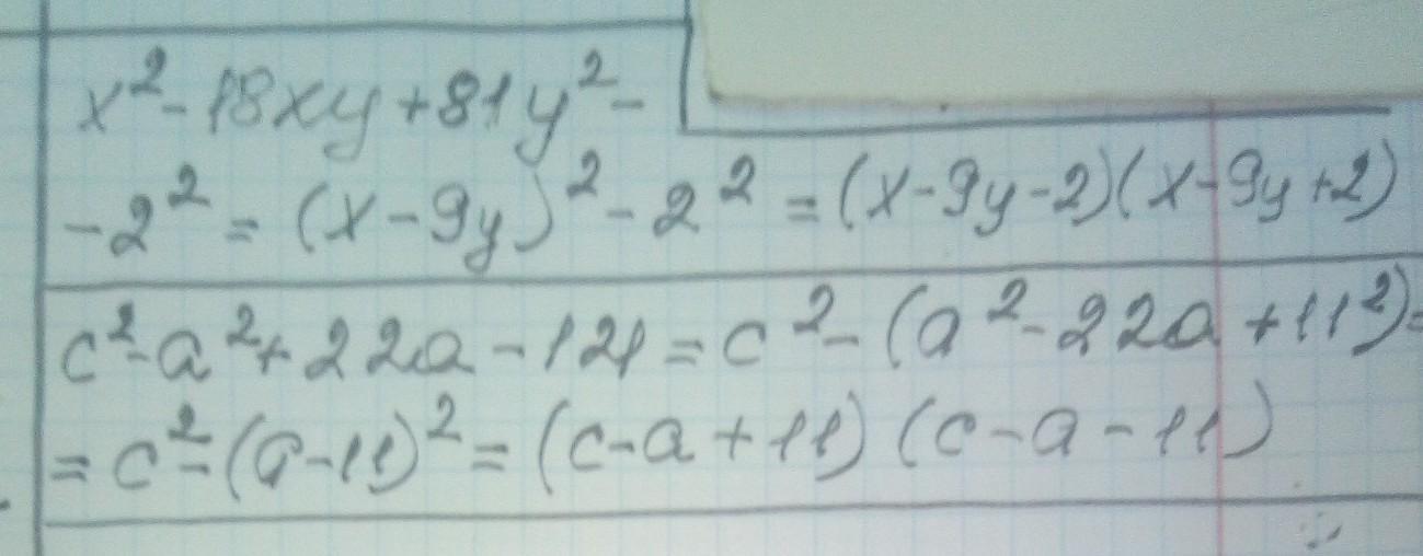 подайте у вигляді добутку вираз x²-18xy+81y²-2²;