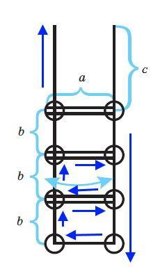Другий відрізок має довжину 2*a + c, оскільки шнурівка повинна проходити вздовж двох рядів дірок, а також бути достатньо довгою, щоб можна було зв'язати вузол.