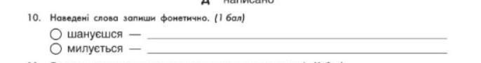 10. Наведені слова запиши фонетично. (1 бал) шануешся милується 11. Допиши -ся чи -сь, дотримуючись правил милозвучностi. 1 бал)