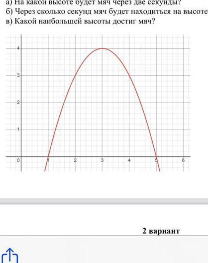 h = -(t - 3)2 + 4, h - высота в м, t - время в секундах.
