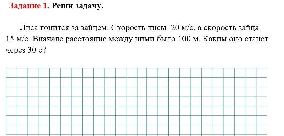 Тому за 1 с лисиця пройде 20 м, а заяць - 15 м.