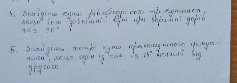 2) Сума гострих кутів прямокутного трикутника дорівнює 90*. Якщо один з них позначимо - х, тоді другий буде: х+14. Маємо ріаняння: