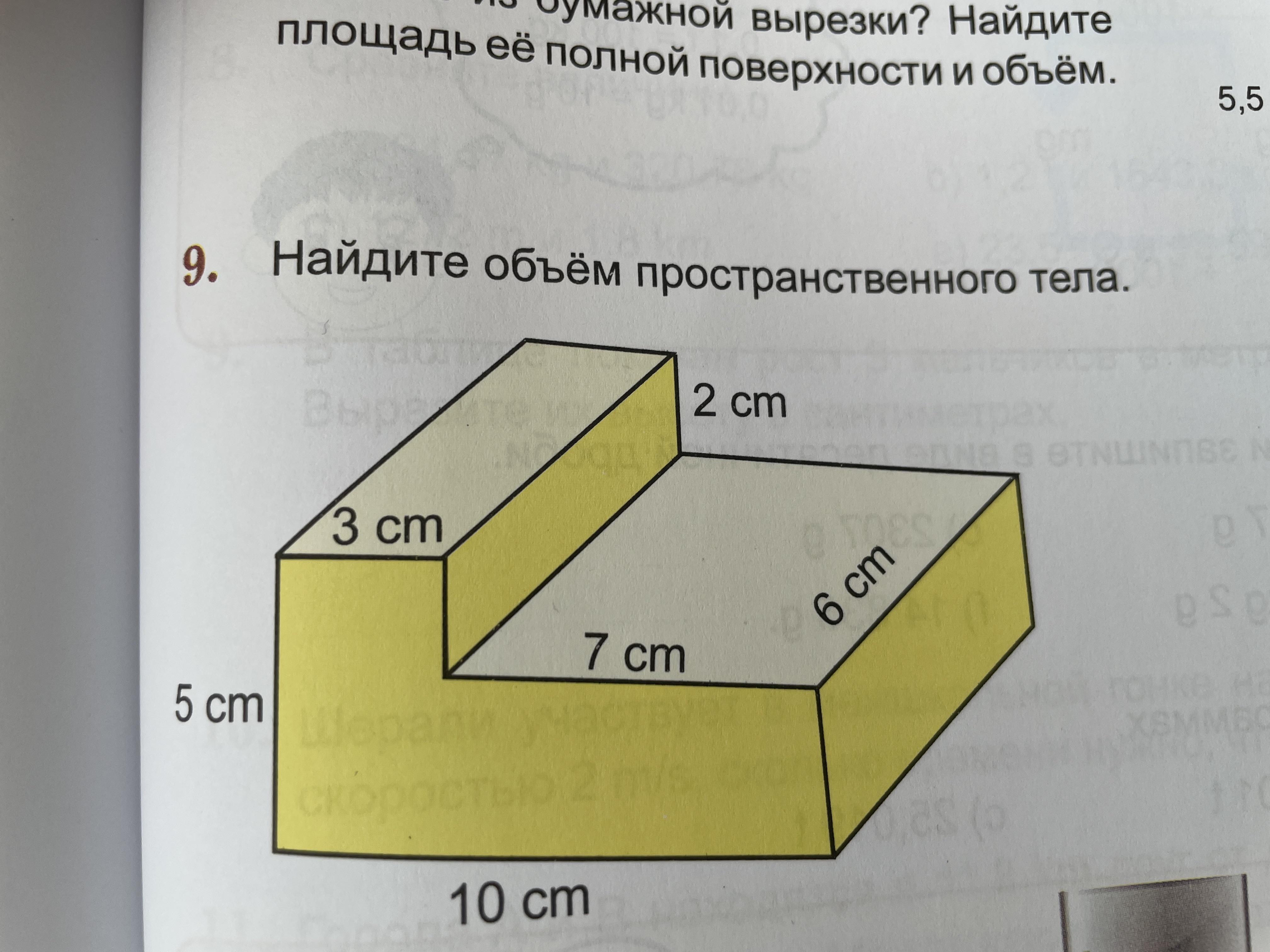 10 \times 5 \times 6 - 2 \times 7 \times 6 = 300 - 84 = 216 \: cm {}^{3}