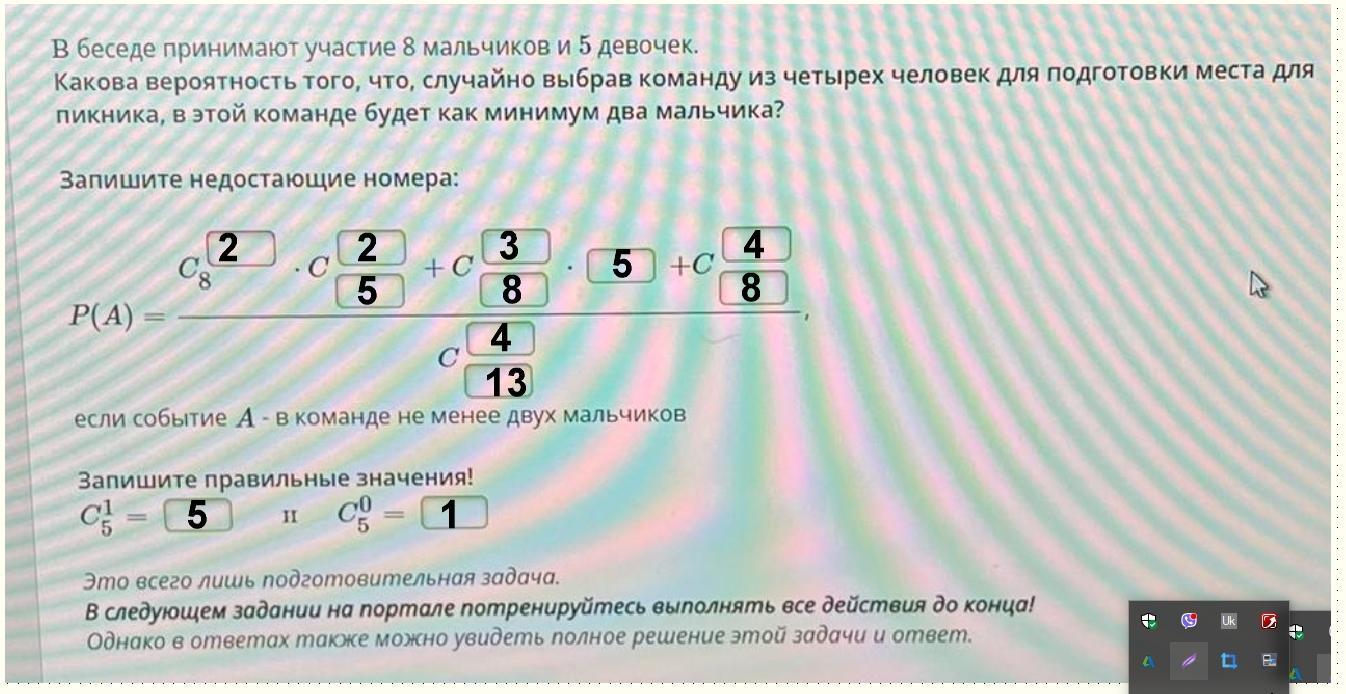 Какова вероятность того, что если случайным образом выбрать команду из четырех человек для приготовления места для пикника, то у этой команды будет минимум двое мальчиков?
