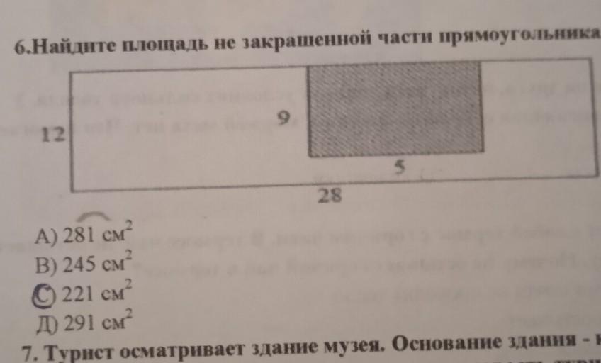 1) Находим площадь всего прямоугольника (большого вместе с закрашенной частью)