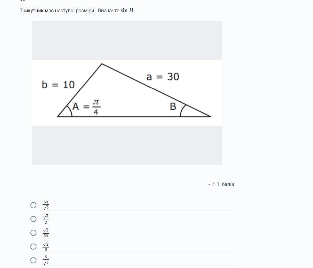 sinB=b*sin45°/a=10*√2/2:30=5√2/30=√2/6