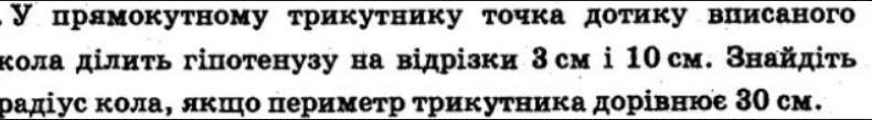Позначимо радіус вписаного кола як r. Тоді знайдемо довжину гіпотенузи за теоремою Піфагора: