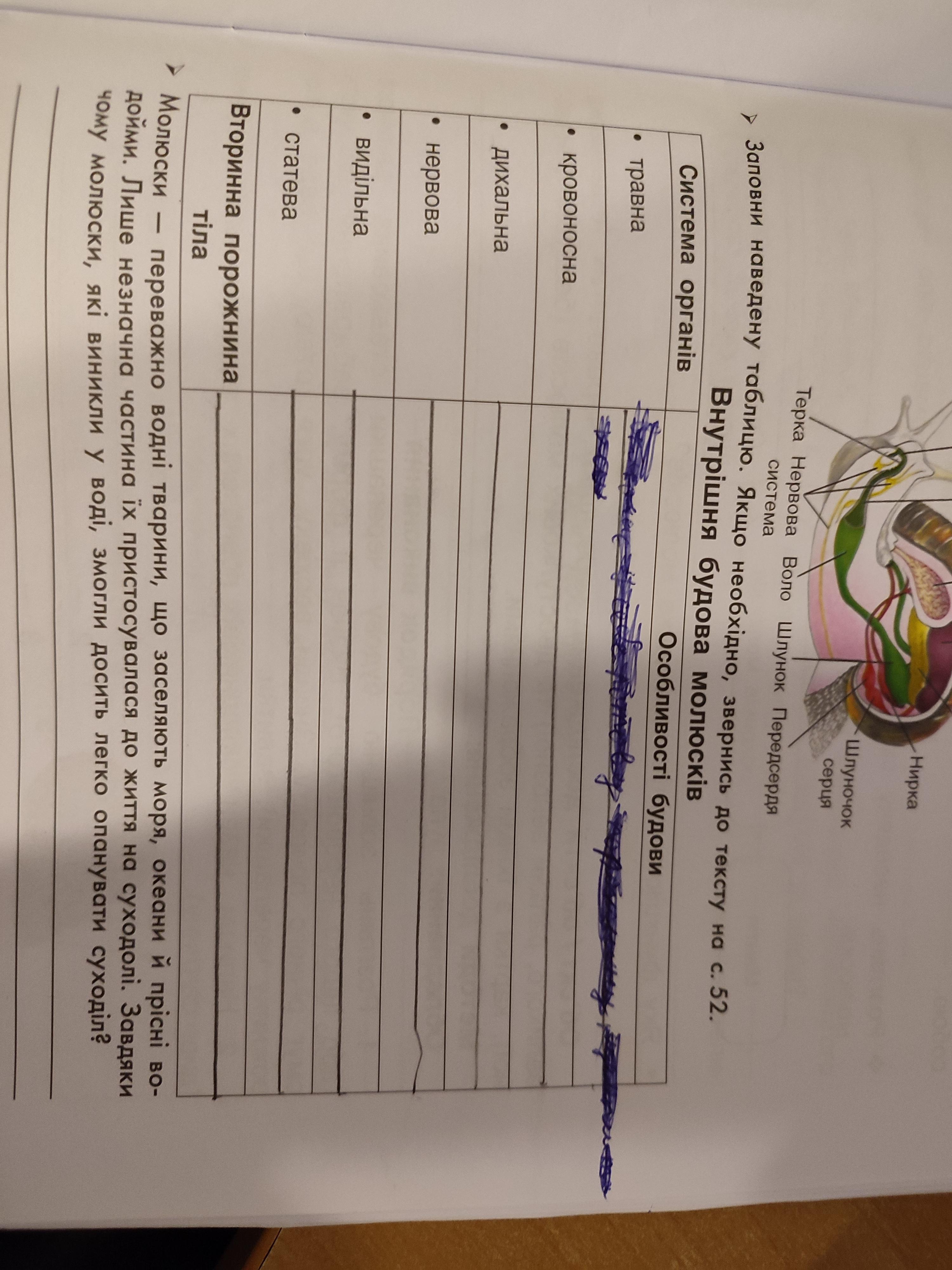 Дихальна: Молюски, що живуть у воді дихають зябрами, а наземні — легенями.