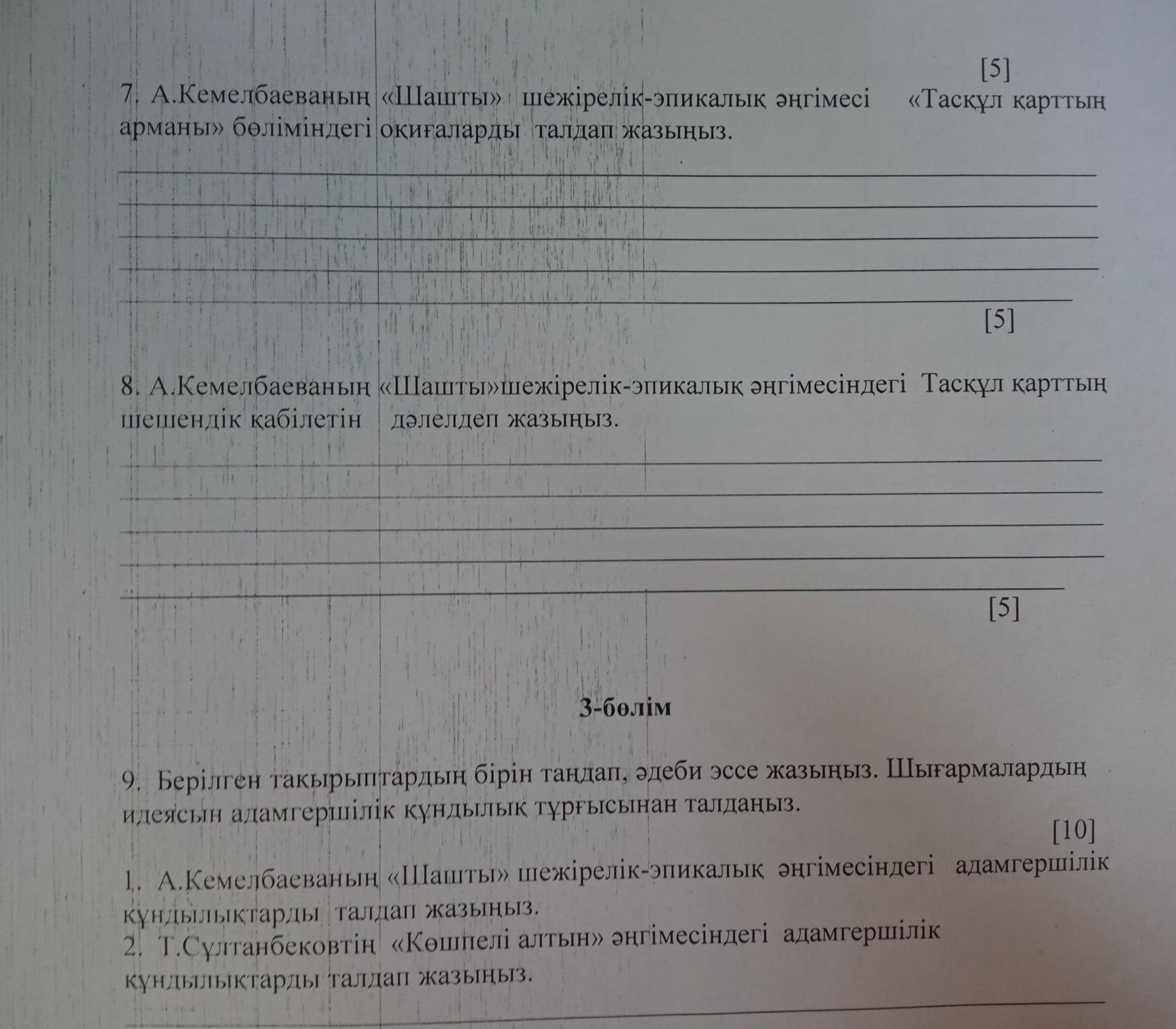 7. А.Кемелбаеваның «Шашты» шежірелік-эпикалық әңгімесі «Тасқұл қарттың арманы» бөліміндегі оқиғаларды талдап жазыңыз.