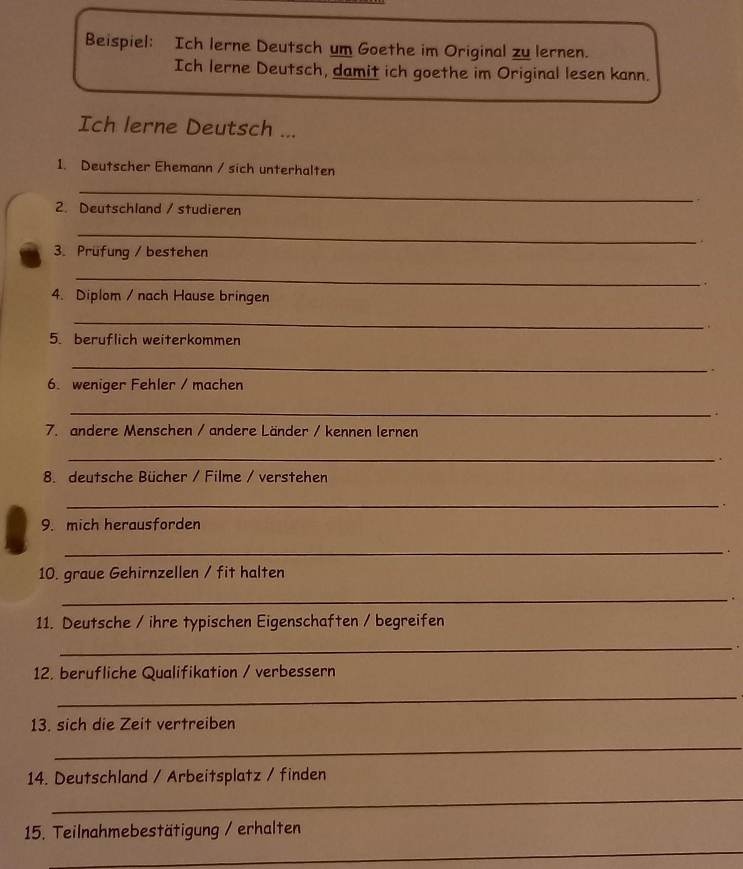 Ich lerne Deutsch, um andere Menschen und Länder kennenzulernen.