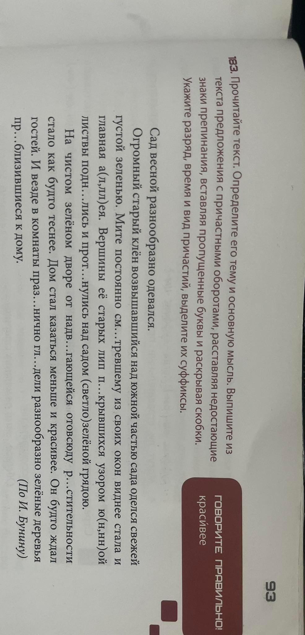 Прочитайте текст. Определите его тему и основную мысль. Выпишите из текста предложения с причастным оборотами, расставляя недостающие знаки препинания, вставляя пропущенные буквы и раскрывая скобки. Укажите разряд, время и вид причастий, выделите их суффиксы. ( Мне только помочь с - предложениями с причастным оборотом, найти причастия и указать их разряд, время и вид, и суффиксы выделить. Заранее спасибо!!! Помогите!