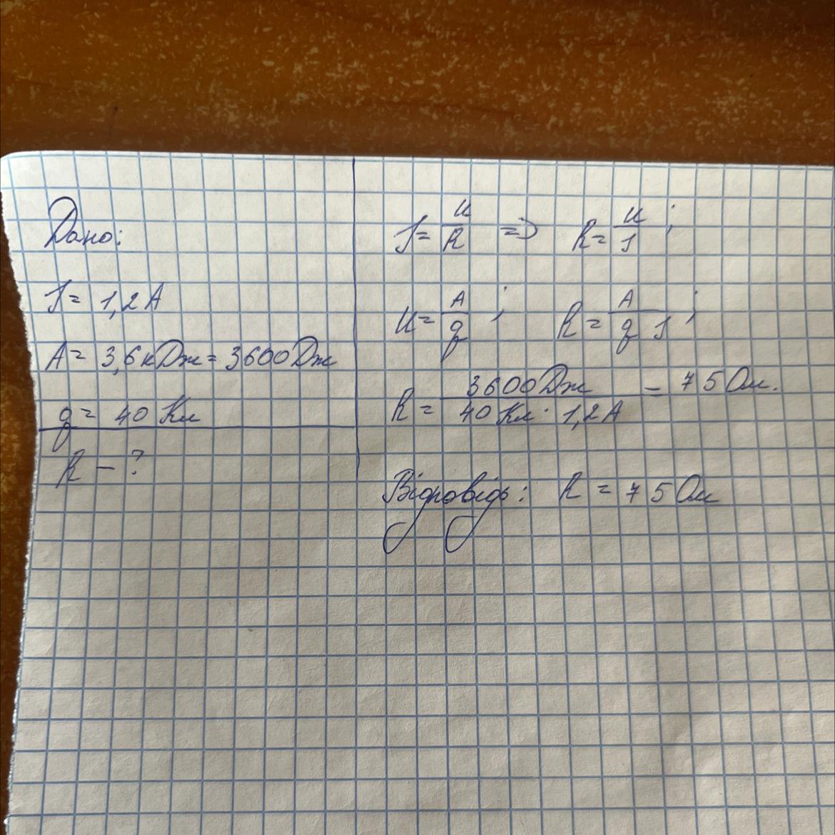 Яким є опір приладу, якщо він розрахований на струм 1,2 А, а джерело струму виконує роботу 3,6 кДж по переміщенню заряду 40 Кл ?