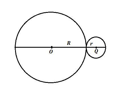 Причём R=4r , а расстояние между центрами окружностей равен OQ=R+r , OQ=4r+r=5r