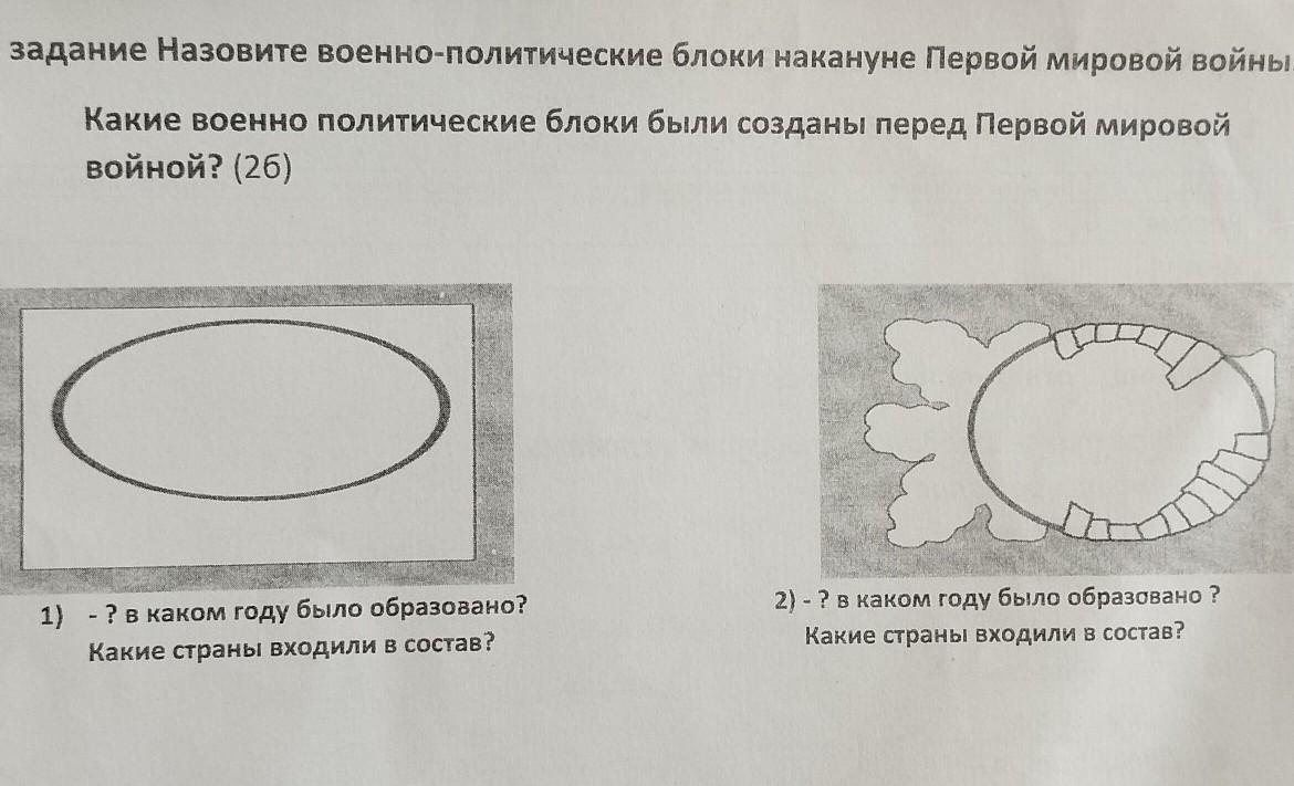 капитальный 3 задание Назовите военно-политические блоки накануне Первой мировой войны... Какие военно политические блоки были созданы перед Первой мировой войной? (26) вишке ка 1) - ? в каком году было образовано? Какие страны входили в состав? Общий балл - 15 С 2) - ? в каком году было образовано ? Какие страны входили в состав?