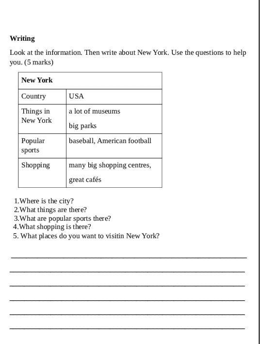 The city is located in USA. There are a lot of museums and local big parks. The popular sports in this city are baseball and of course American football. Fortunately, if you want to go to shopping, there are many big shopping centres with widespread assortiments. The first place which I would to visit is The Statue of Liberty, the famous building in New-York and in the world overall. I'd like to visit this city, because it's very beautiful.