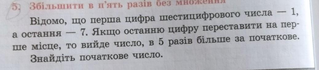 Якщо останню цифру переставити на перше місце, то ми отримаємо число FABCDE. За умовою задачі, це число в 5 разів більше за початкове: