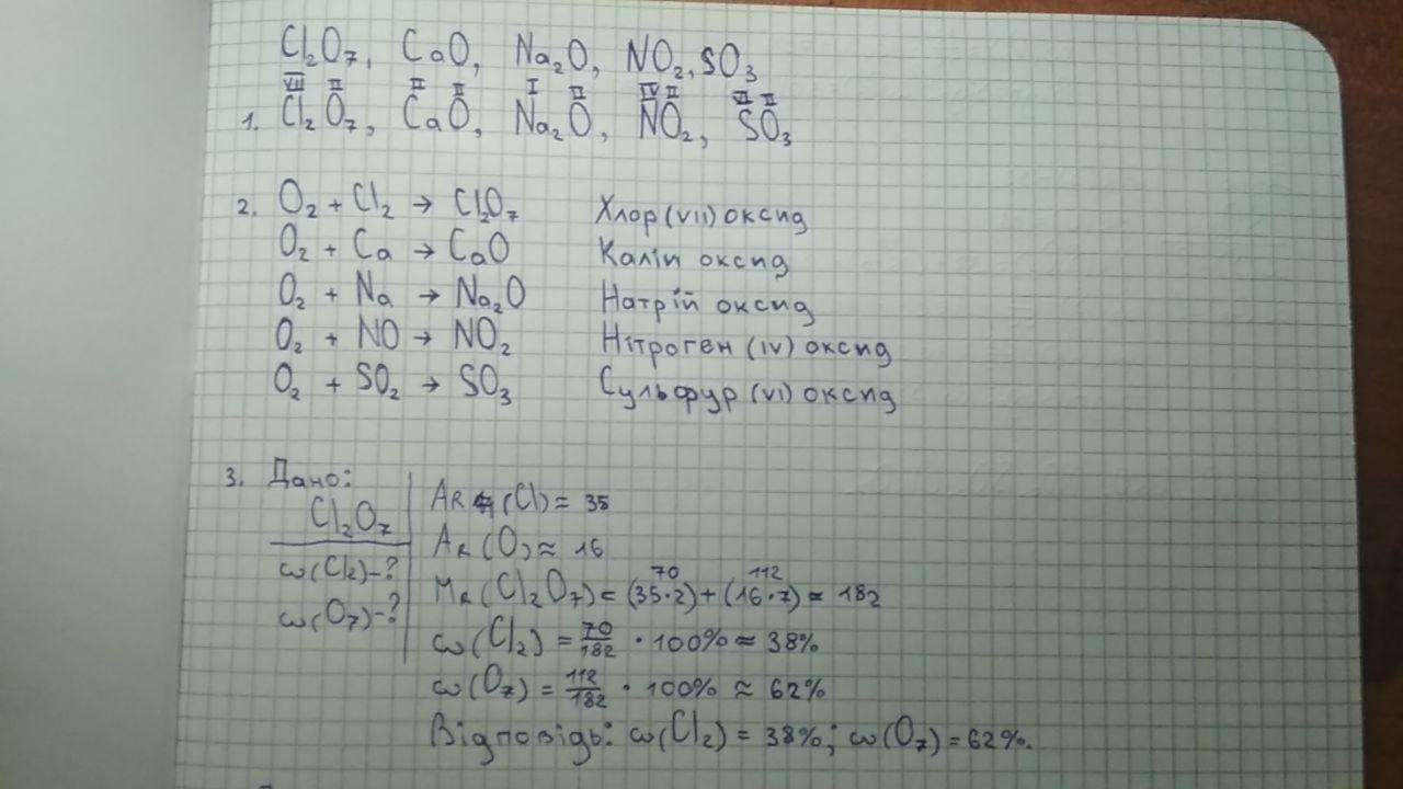 1)хлор 7 валентність , оксиген 2 Cl207, кальцій 2 , оксиген 2 CaO ,Натрій 1 , оксиген 2 валентність , Na2O, нітроген 4 оксиген 2,-NO2.