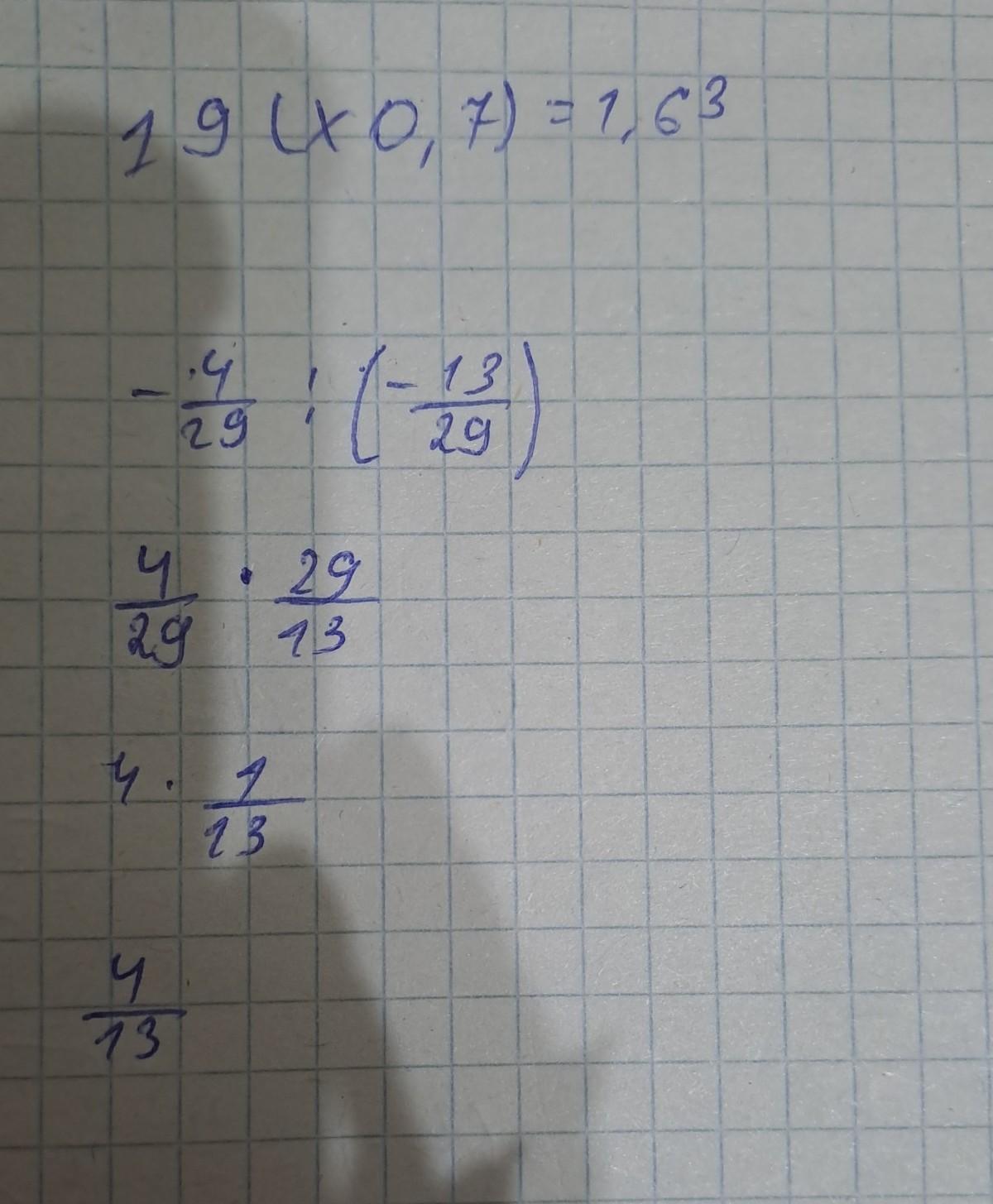 У перше віконце пиши знак + ,якщо резулььтат додатний ,і знак -,якщо результатвід'ємний)-4/29÷(-13/29)=