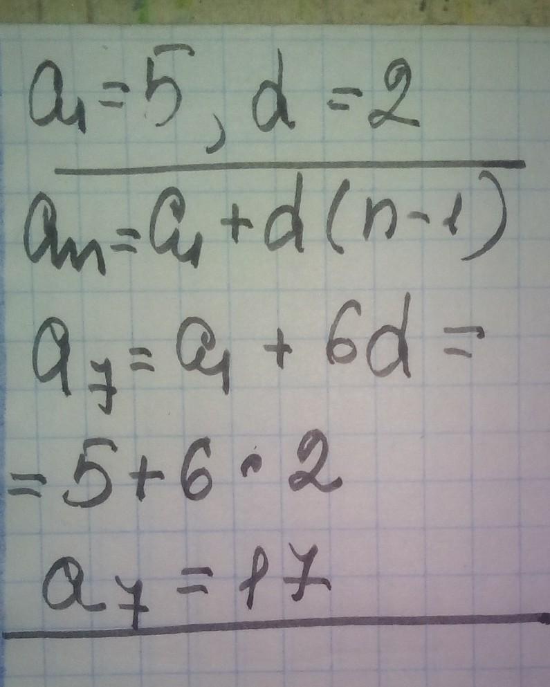 дана арифметическая прогрессия (an) у которой a1=5 d=2 найдите a7. решите пожалуйста много баллов даю