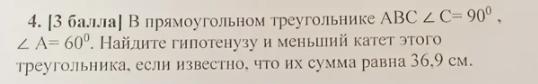 ВС=0,5×ВА=0,5×24,6=12,3 см. (меньший катет)
