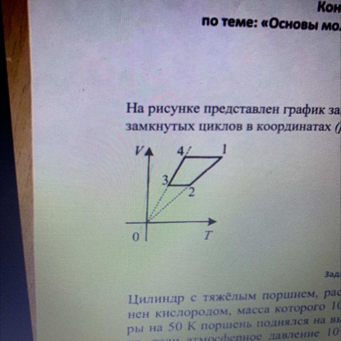 На рисунке представлен график замкнутого цикла. Вычертите диаграммы замкнутых циклов в координатах (p, V) и (p, T)