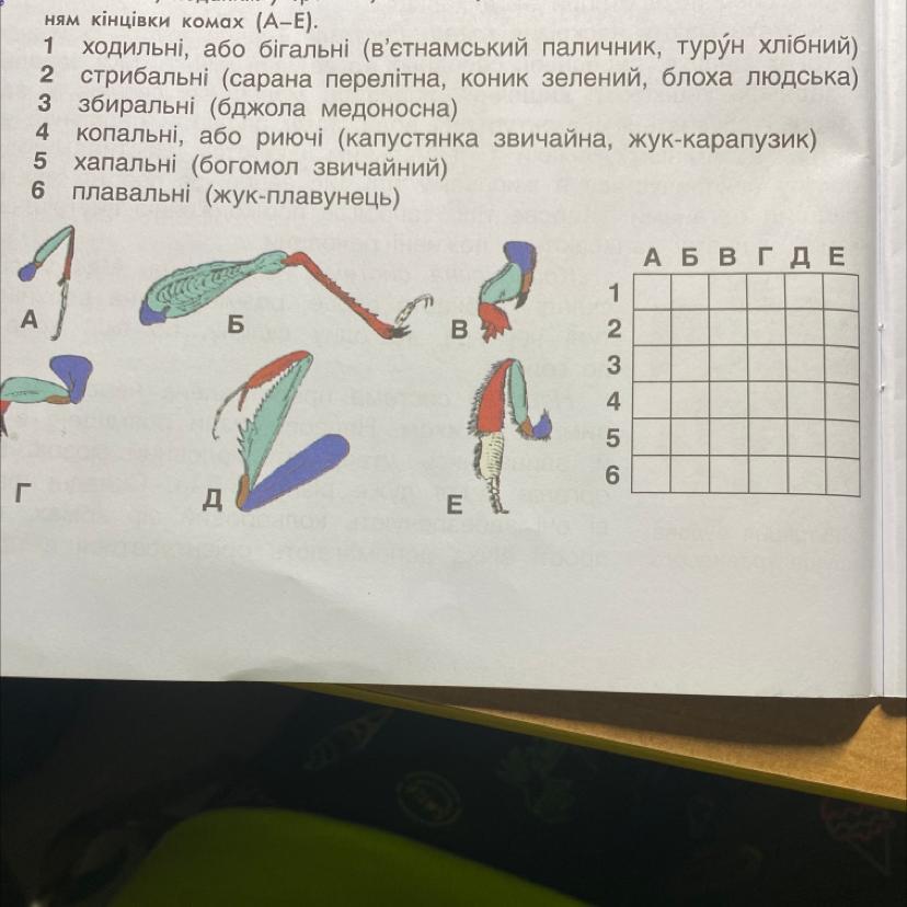 ням кінцівки комах (А-Е).