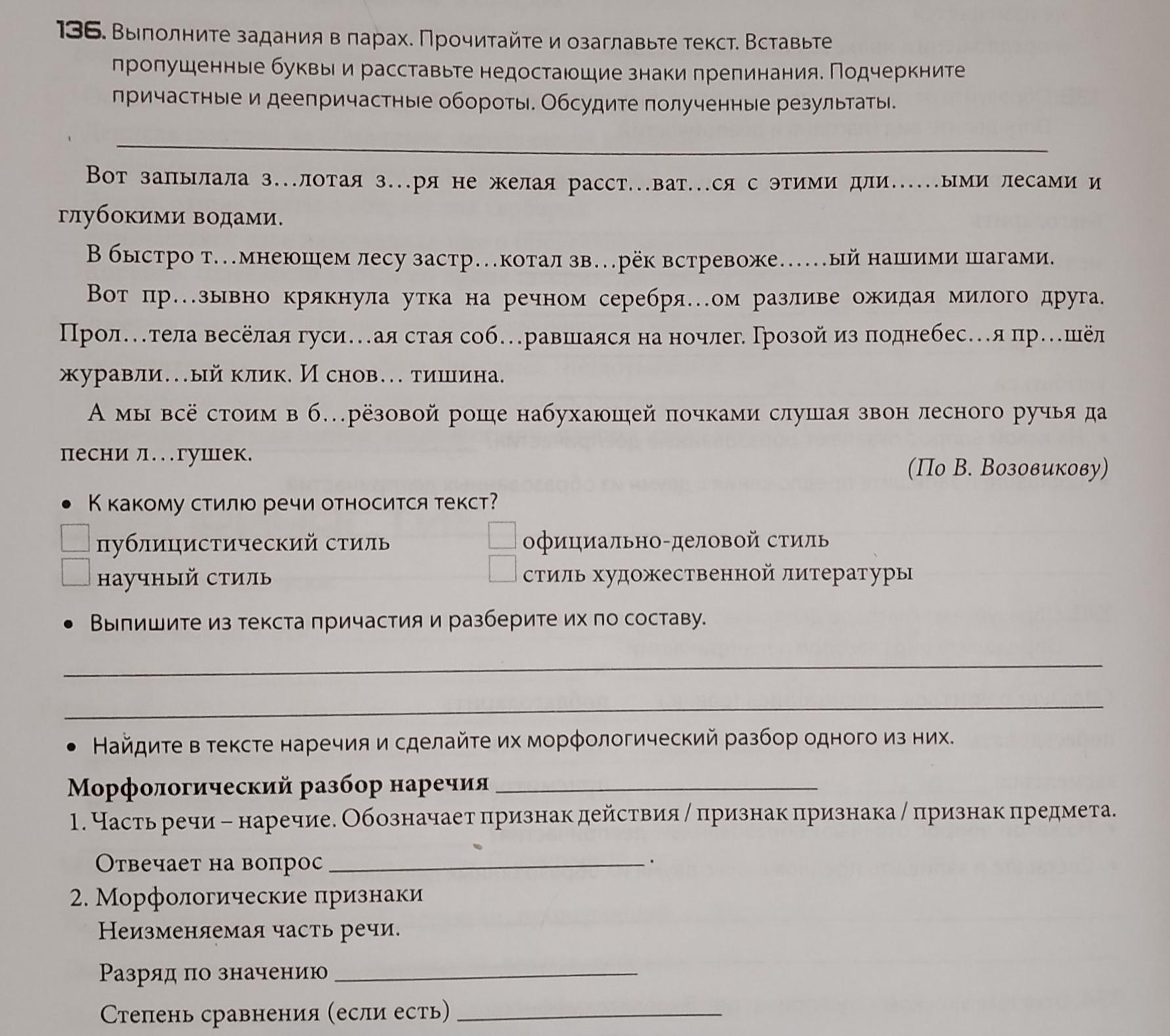 1.Золотая 2.з?ря 3. расставаться 4. длинными 5. темнеющем 6. застрокотал 7. зверёк 8. встревоженный 9. Призывно 10. серебряном 11. пролетела 12. гусиная 13. собиравщаяся 14. поднебес? 15. пришёл 16.