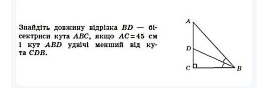 Кута ABC якщо AC-45 см і кут ADB удвічі менший від кута CBD