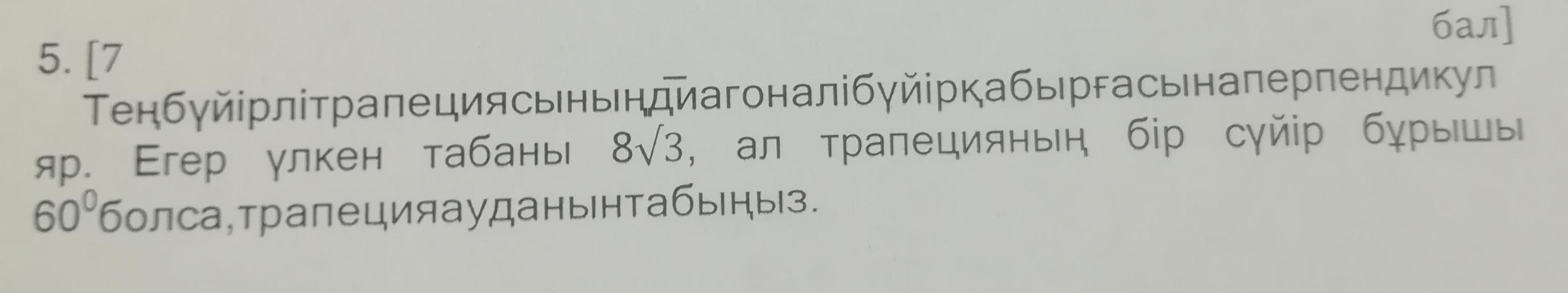 Перпендикулярно диагональной стороне равнобедренной трапеции. Если большое основание равно 8√3, а один острый угол трапеции равен 60, найдите площадь трапеции.
