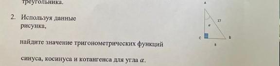 cos a=AC/AB=15/17.