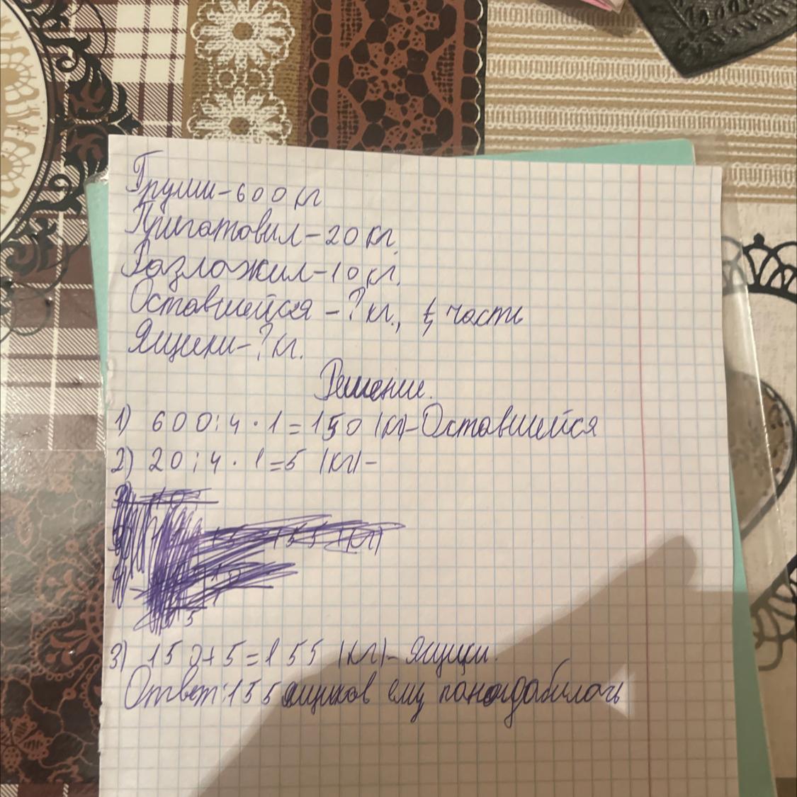Фермер приготовил для продажи однотонную 600 кг груш. 1/4 часть груш он разложил в ящике по 20 кг в каждый а оставшиеся груши в ящике по 10 кг в каждый.Сколько ящиков ему понадобилось?