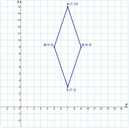 Чотирикутник ABCD з вершинами в точках A(7;15), B(5;9), C(7;3), D(9;9) є...