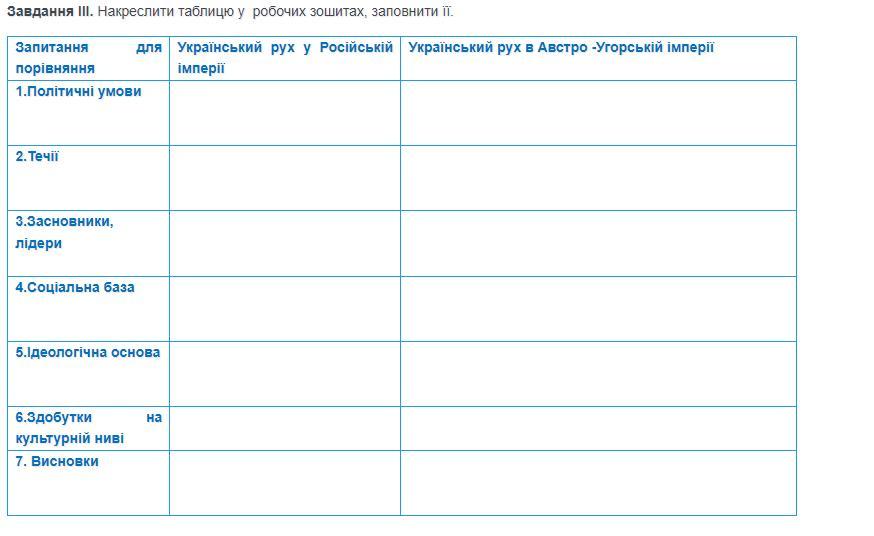 Практичне заняття «Порівняння розвитку українського руху в Російській та Австро - Угорській імперіях у XIX столітті»