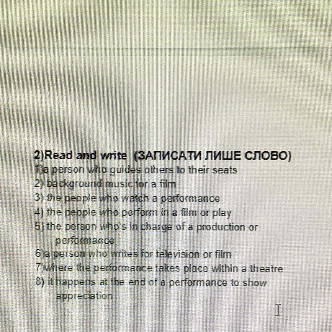 2)Read and write (ЗАПИСАТИ ЛИШЕ СЛОВО)