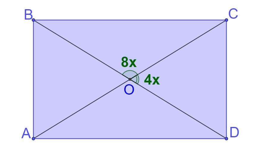 ABCD - заданий прямокутник. За умовою ∠ВОС : ∠COD = 8:4.