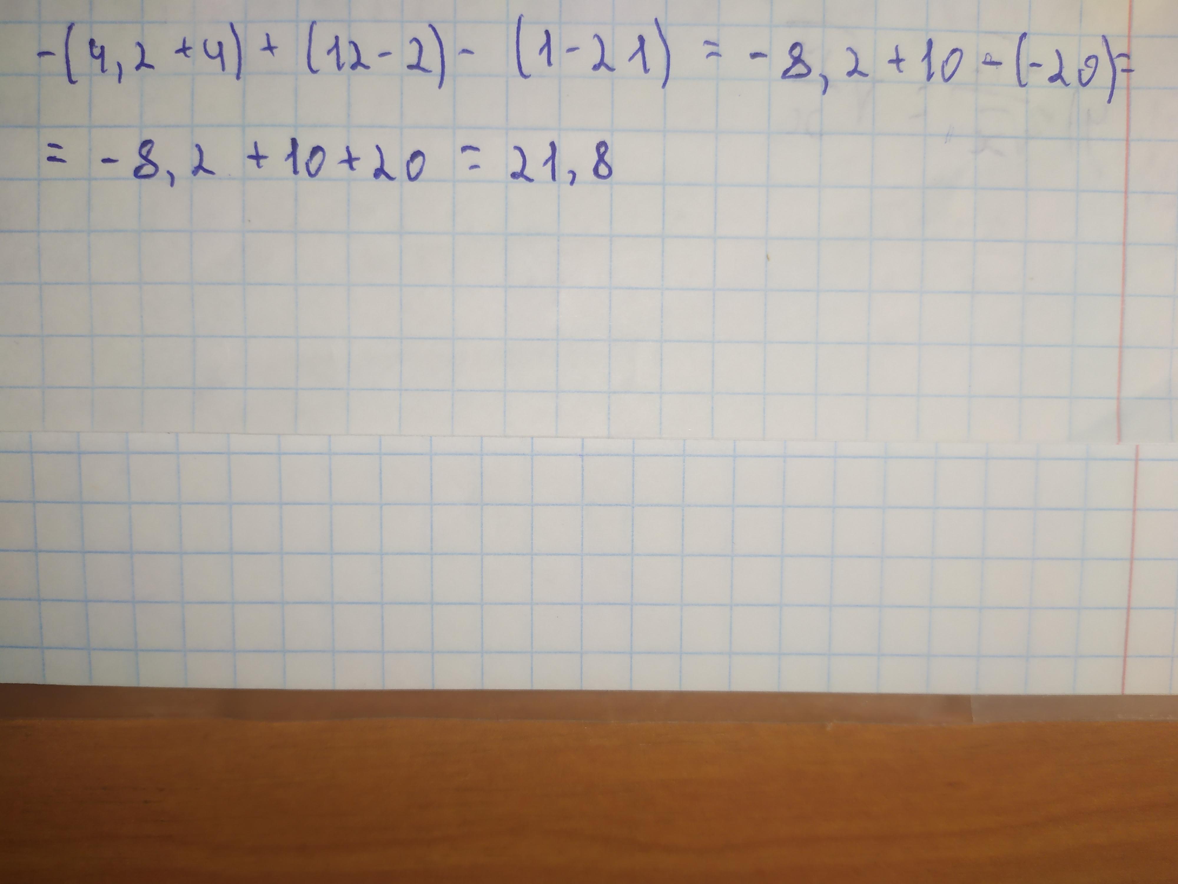 Отже, вираз - (4,2 + 4) + (12- 2) - (1-21) дорівнює 38.4.