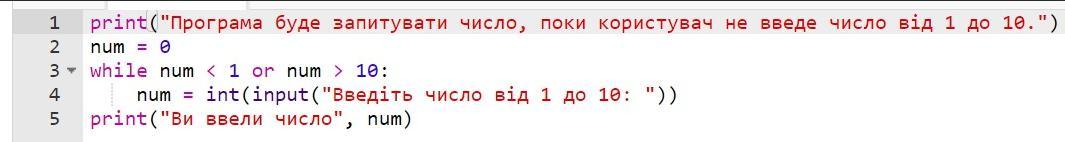 print("Програма буде запитувати число, поки користувач не введе число від 1 до 10."