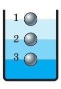 У посудину налили три рідини, які не змі- шуються, - ртуть, воду, гас (рис. 3). Потім у посудину опустили три кульки: сталеву, пінопластову та дубову. Як розташувалися шари рідин у посудині? Визначте, де яка кулька. Відповіді поясніть.